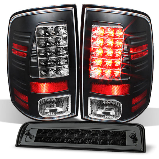 AKKON - For [LED Set]09-18 Dodge Ram 1500 2500 3500 Black Bezel Tail lights + Smoked 3rd Brake High Mount Lamp