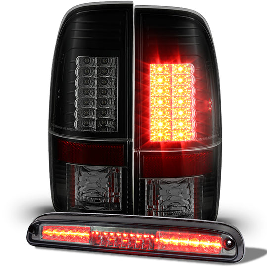 AKKON - For [Smoked LED Set] 08-16 Ford Super Duty Tail Light + 3rd Brake High Mount Lamp Combo