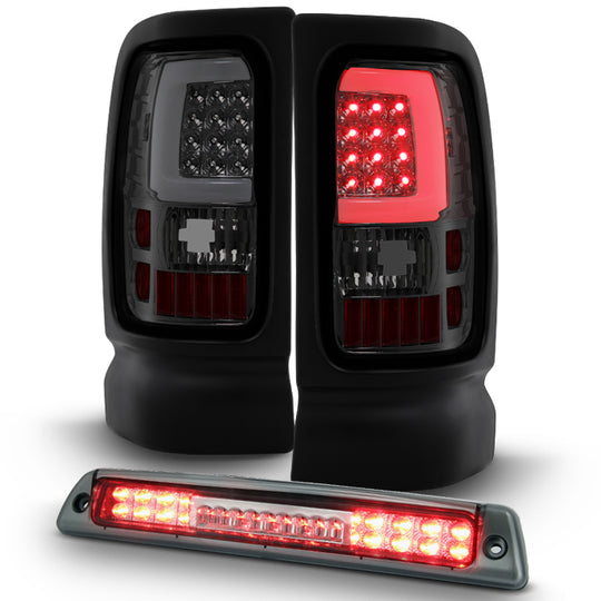 AKKON - For [Smoked Lens LED Set] 94-01 Dodge Ram BR BE LED Tube Tail Light + 3rd Brake Lamp Combo