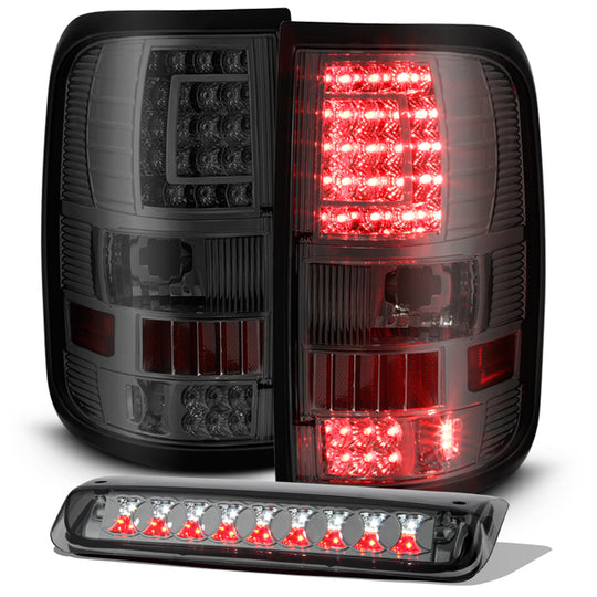 AKKON - For [Smoked Lens LED Set] 04-08 Ford F150 F-Series LED Tube Tail Light + 3rd Brake Lamp Combo