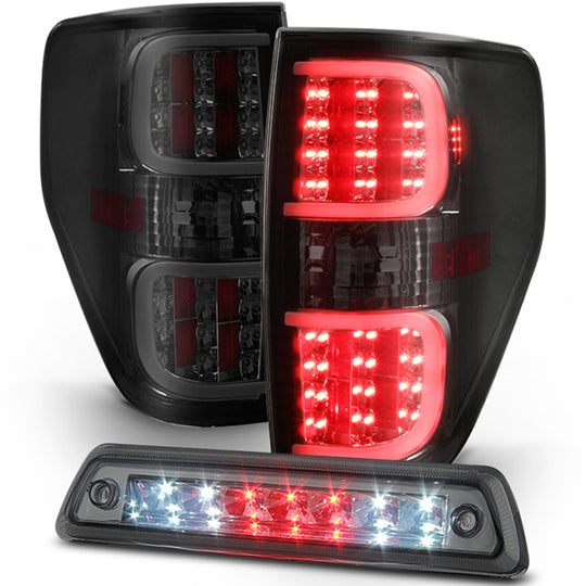 AKKON - For [Smoked Lens LED Set] 09-14 Ford F150 F-Series LED Tube Tail Light + 3rd Brake Lamp Combo