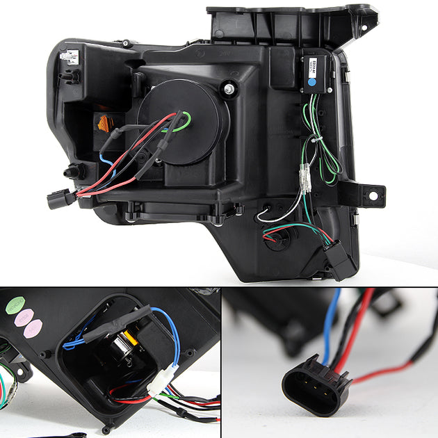 AKKON - Fits 2009-2014 F150 LED Strip Projector Black Headlights + FULL LED [C-Light Bar] Black Tail Lamp Combo