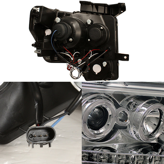 AKKON - Fits 2009-2014 F150 Dual Halo Projector Clear Headlights + LED [C-Light Bar] Red Tail Lamp + 6000K HID Xenon Slim Kit