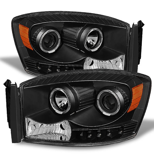 AKKON - Ram Pickup Truck Black Bezel Dual Halo Ring DRL Daylight LED Projector Headlights Replacement Pair