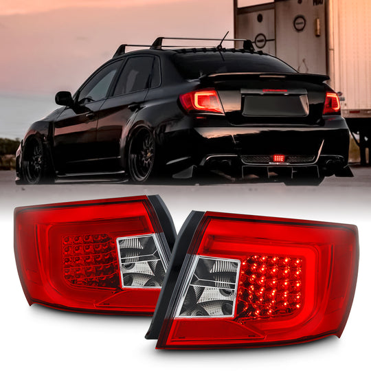 AKKON - [2019 Upgrade LED]For 08-11 Subaru Impreza/WRX Taillights With Red Bar Housing - Red Chrome