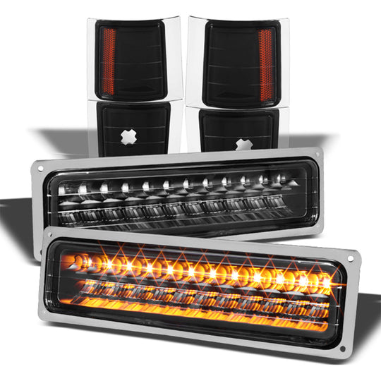 AKKON - [6 PCS Corner Lights]For 1994-99 C/K Pickup Suburban Tahoe LED Turn Signal Lights - Black Housing