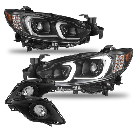 Regular price $309.99This is a 100% brand new pair of Headlights Replacement Assemblies in Midnight Black Housing with Crystal Clear Lens and Fog Lights in Chrome Housing with Yellow Lens Compatible With: 2014-2017 Mazda 6 ***Does Not Fit... -