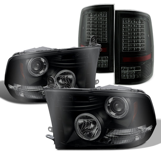 AKKON - [Black Smoke Bezel]Fits 2009-2018 Dodge Ram LED Dual Halo Projector Smoked Headlights & LED Tail Lamps