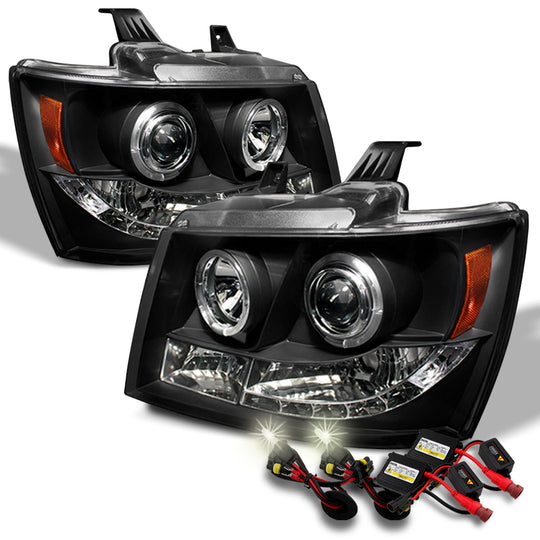 AKKON - [Black Housing] Fits 2007-2014 Tahoe Avalanche Suburban LED Dual Halo Projector Headlights Bezel w/ 4000K HID Kit