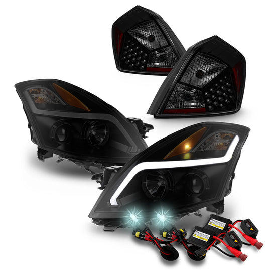 AKKON - [Black Housing] Fits 2007-2009 Nissan Altima Sedan LED Light Tube Projector Smoked Headlights & Tail Lamps w/ 8K HID