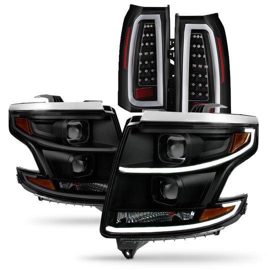 AKKON - [Black Smoked] 2015-2020 Chevy Suburban Tahoe Halogen Type Models LED DRL Projector Headlights + FULL LED Tail light