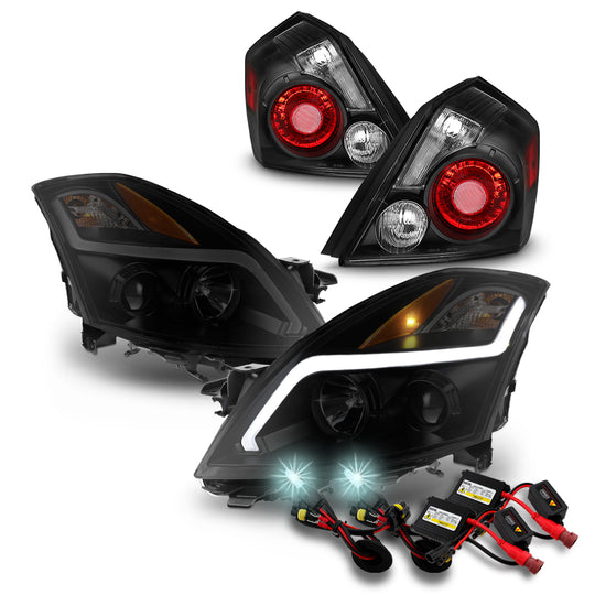 AKKON - [Black Smoke Housing] Fits 2007-2009 Nissan Altima Sedan LED Light Tube Headlights + 8K HID & Tail Lamps