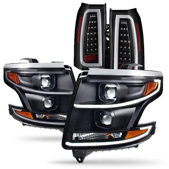 Regular price $548.99This is a 100% brand new pair of Headlights + Tail light Replacement Assemblies in Midnight Black Housing With Crystal Clear Lens Compatible With: 2015-2020 Chevy Suburban Tahoe Halogen Type Headlights Models Only ****Not Compatible With... -