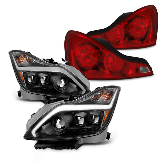 AKKON - [LED Combo] For 2008-2015 Infiniti G37 / Q60 Coupe Light Tube Projector Headlight + OE Red Tail Lamps