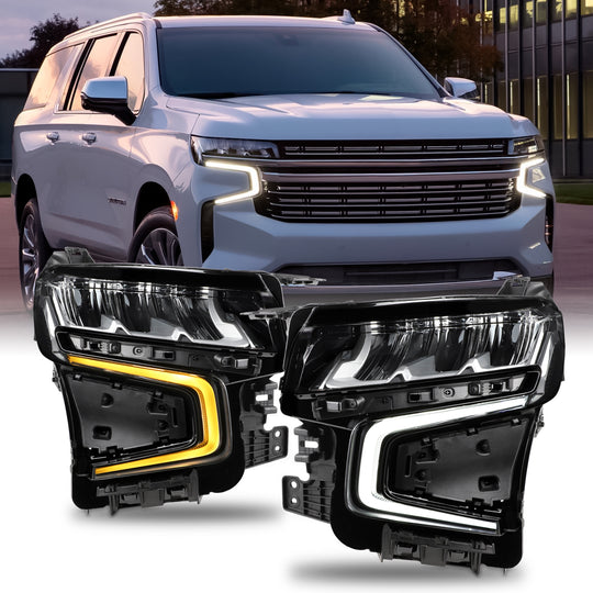 AKKON - Fit 2021 2022 2023 Chevy Tahoe/Suburban 21-23 [Full LED] Switchback Headlight Headlamp Driver + Passenger