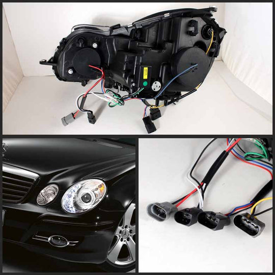 AKKON - [LED Strip] For 2003-2006 Mercedes Benz W211 E-Class Sedan Wagon Chrome Bezel DRL Projector Halogen Type Headlights Pair