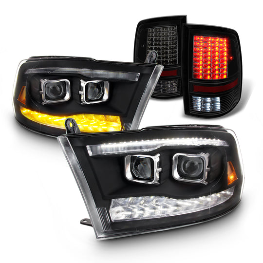 AKKON - [LED COMBO]Fit 09-18 Dodge Ram| Projector Hi/Lo Headlight + Smoked Housing Tail Light Housing