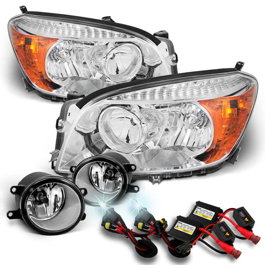 AKKON - [OE Factory Style] For 06-08 Toyota RAV4 XA30 Chrome Clear Headlight Headlamps Replacement + Fog Light Combo + 6K HID