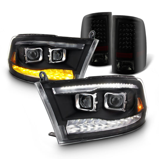 Regular price $407.88This is a 100% brand new pair of Headlights Replacement Assemblies in Midnight Black Housing With Crystal Clear Lens, Tail Lights Assemblies in Smoked Housing With Crystal Clear Lens.Compatible With: 2009-2018 Ram 1500 2010-2018 Ram 2500/3500... -