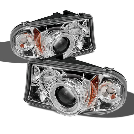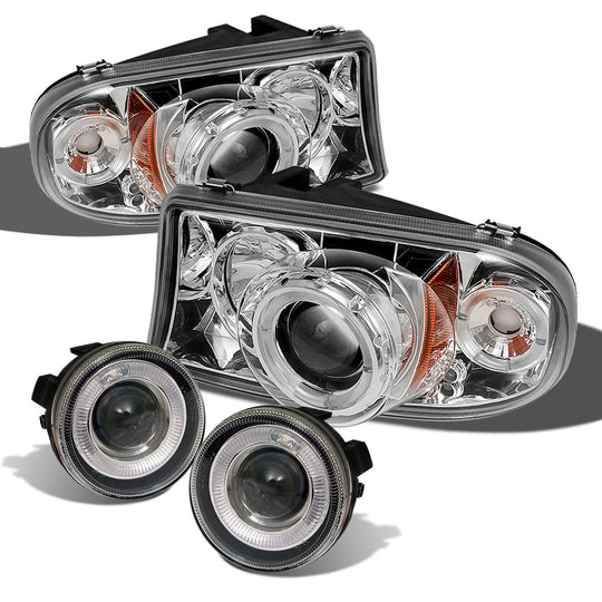 AKKON - [Upgraded Projector]Fit 2001-2004 Dodge Dakota Durango LED Dual Halo Headlights + LED Fog Lamps [Chrome]