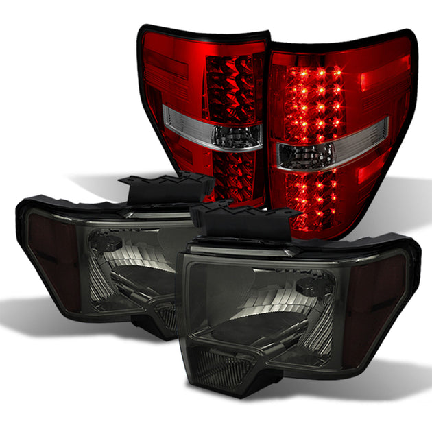 AKKON - Fits 2009-2014 Ford F150 Smoked Headlights + LED Red Smoke Tail Brake Lamp Pair Left Driver+Right Passenger