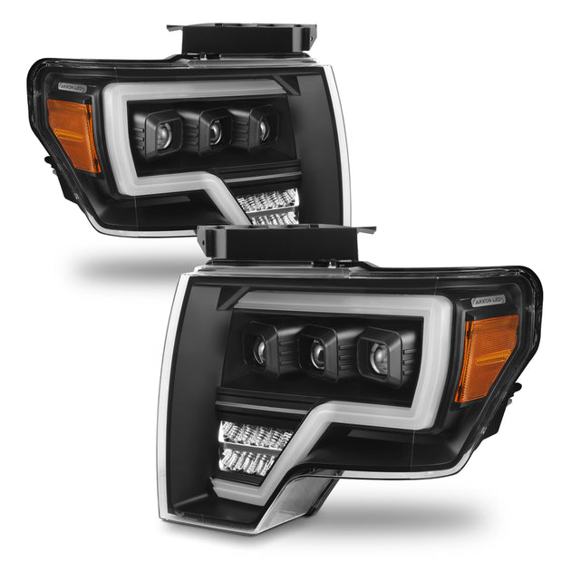 AKKON - Fits 2009-2014 Ford F150 [Halogen Type] Projector Black Headlights Pair w/ Full LED High&Low Beam + C-Tube Parking Lamp