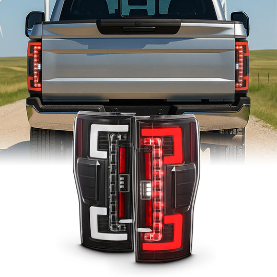 Regular price $338.99SKU: ALT-YD-FS17BS-GRLED-BK This is a 100% brand new pair of LED Tail lights Replacement Assemblies in Midnight Black Housing With Crystal Clear Lens Compatible With: 2017-2019 Ford F250 Super Duty LED w/ Blind Spot Model 2017-2019... -