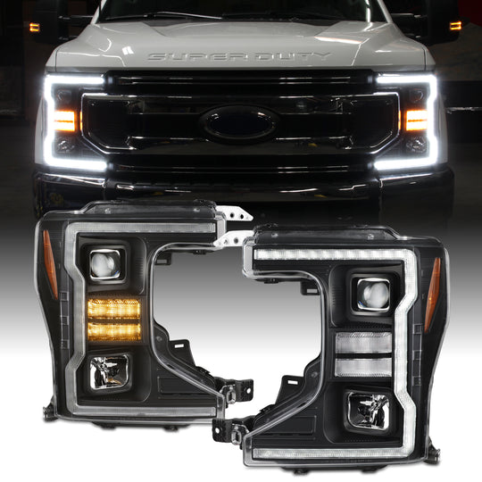 AKKON-Fit 20-22 Ford F250 F350 F450 Super Duty [Halogen Type] Projector Black Headlights w/LED Running+Sequential Signal