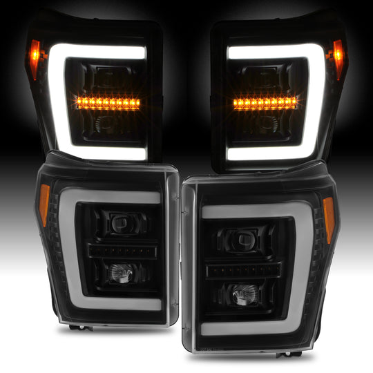 AKKON-Fit 2011-2016 Ford F250 F350 F450 F550 Super Duty Projector Black Headlights Pair w/LED DRL Sequential Turn Signal