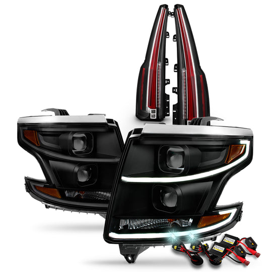 Blk Smoke Suburban Tahoe LED Projector Headlight+Escalade Type Tail light+8K HID