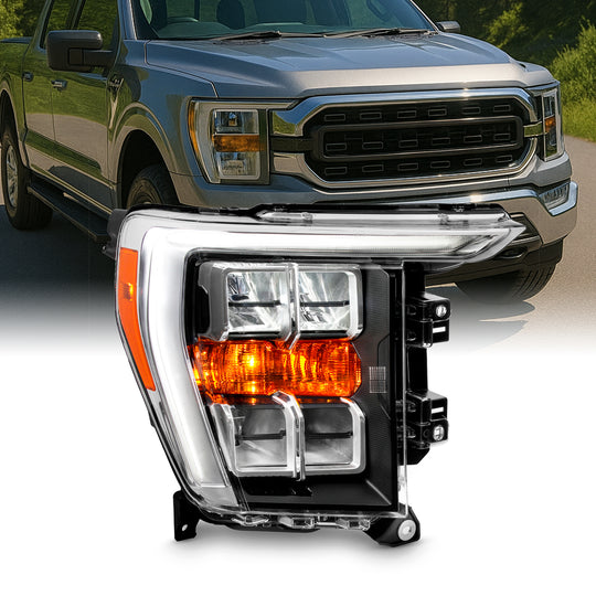 Regular price $278.99SKU: HD-JH-FF15021-LED-OE-R This is a 100% brand new Right Side Headlights Replacement Assemblies in Chrome Housing With Clear Lens Compatible With: 2021-2023 Ford F150 Compatible w/o Adaptive LED Reflector Headlight Models Only ATTN: Not Compatible w/... -