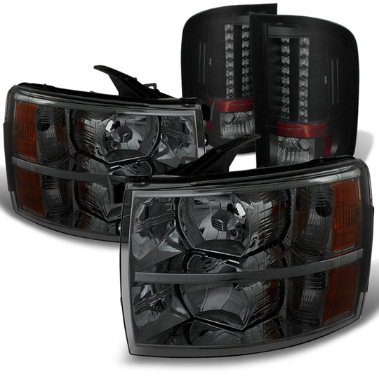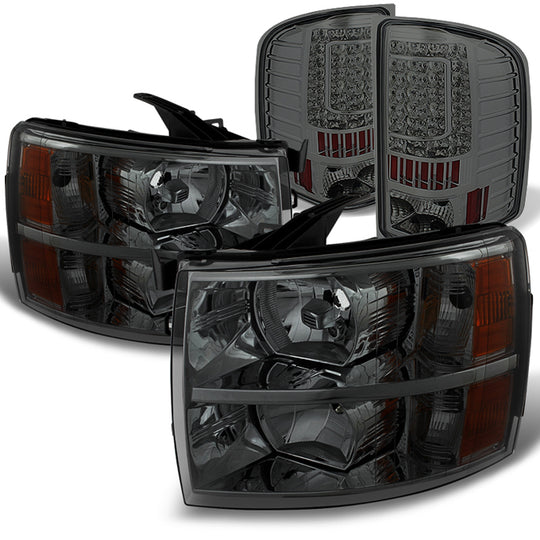 Fit 07-13 Silverado 1500/2500Hd/3500Hd Smoked Amber Headlights + LED Tail Lights