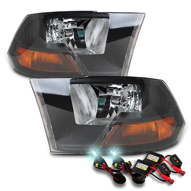 AKKON - Fits 2009-2018 Dodge Ram 1500 2500 3500 Pickup Truck Black Headlights + Slim Ballast 8000K Blue/White HID Kit Set Pair
