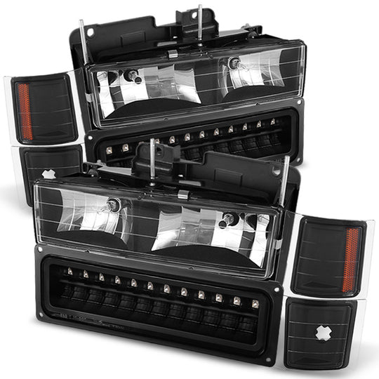 Fit 1994-98 Chevy GMC C/K Black Headlights+LED Bumper Signal Lights+Corner Lamps