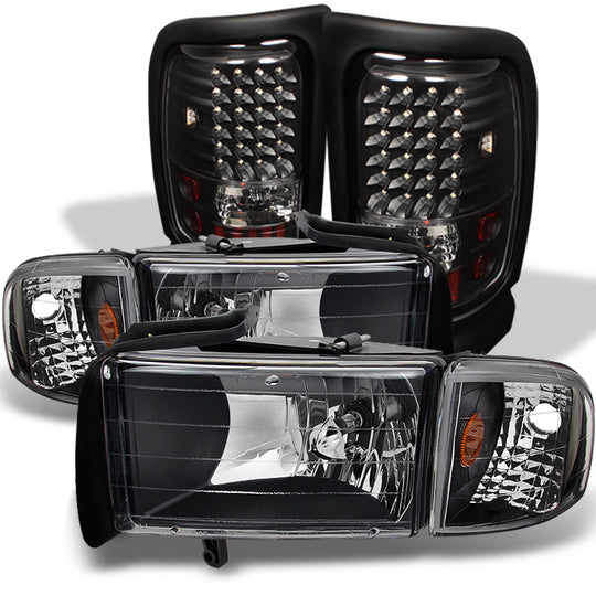 Fit 1994-2001 Ram 1500 1994-2002 Ram 2500 3500 Black Headlights+LED Tail Lights