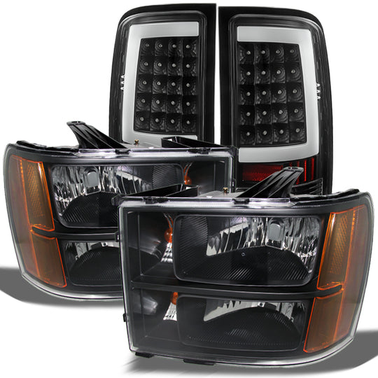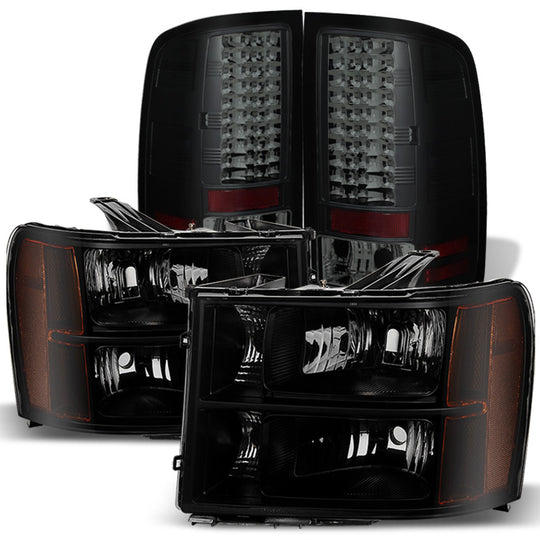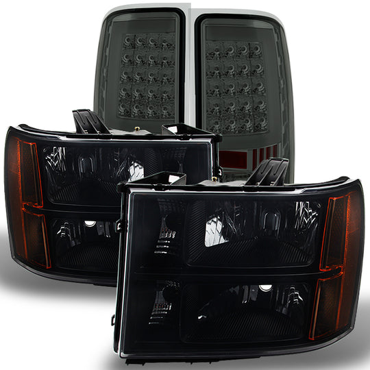 Fit 2007-2013 GMC Sierra Black Smoked Replacement Headlights + LED Tail Lights