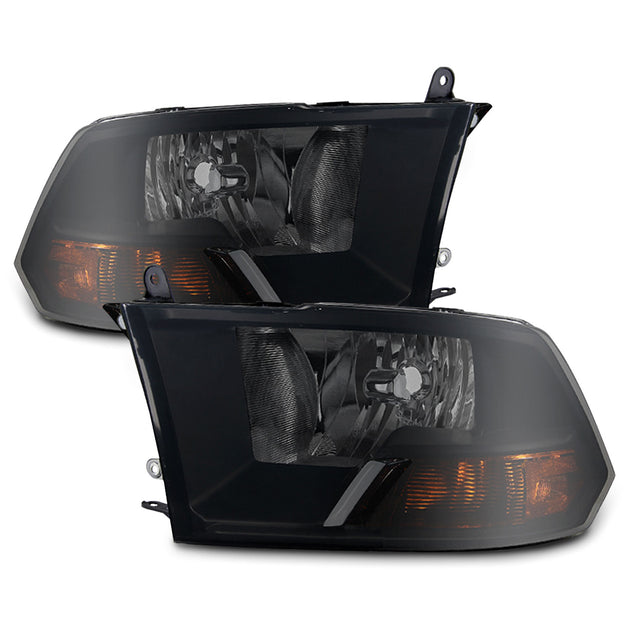AKKON - Fits 2009-2018 Dodge Ram LED Dual Halo Projector Smoked Headlights & LED Tail Lamps [Black Housing]