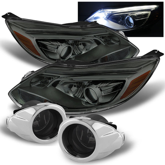 Fits *Euro Spec* 12-14 Focus Smoked DRL Projector Headlights+Smoked Fog Lights