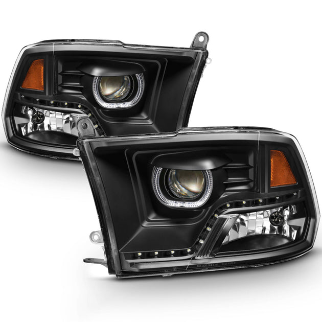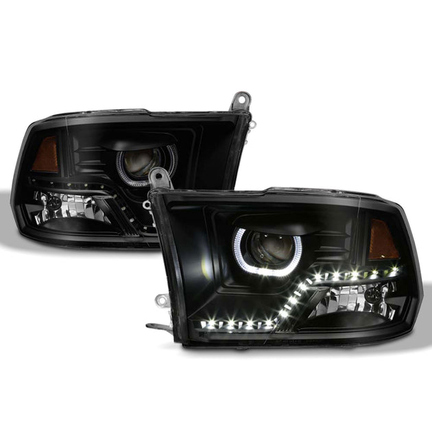 AKKON - Fits 2009-2018 Ram LED Dual Halo DRL Projector Black Housing Headlights + White LED Bar Tail Lights