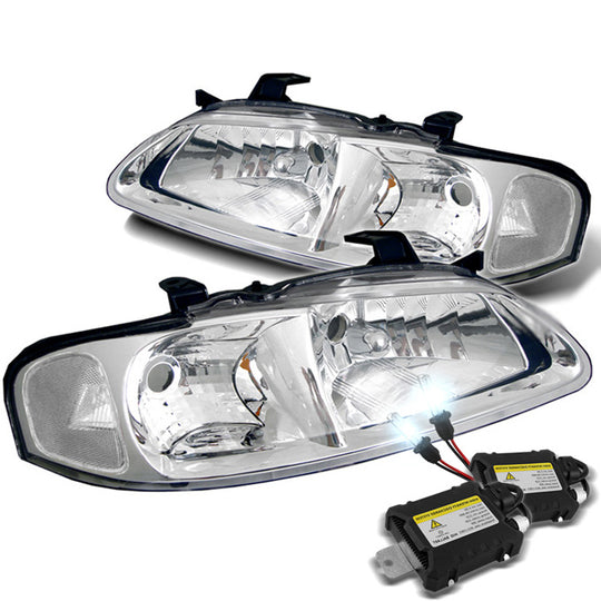 Fits 00-03 Sentra Euro Clear Crystal Headlights+6000K Slim Ballast HID Combo Set