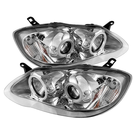Fits 03-08 Toyota Corolla Dual Halo Projector LED Chrome Headlights Lamp Pair