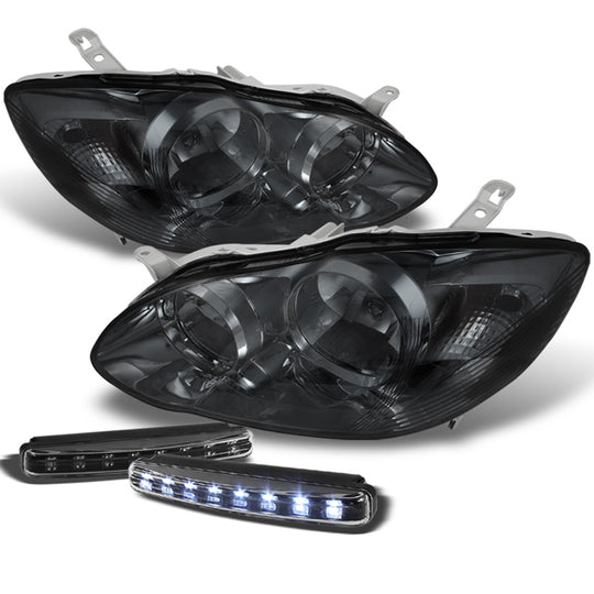 Fits 03-08 Toyota Corolla Crystal Amber Smoked Headlights + Black DRL LED Lights