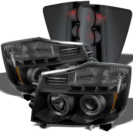 Fits 04-15 Titan Black Smoked Dual Halo Projector LED Headlights+ Tail Light Set