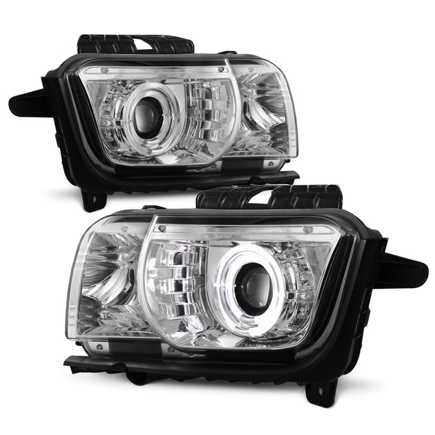 AKKON - Fits 2010-2013 Chevy Camaro [Dual Halo Ring] Projector Chrome Headlights Halogen Type Headlamp Left+Right Pair