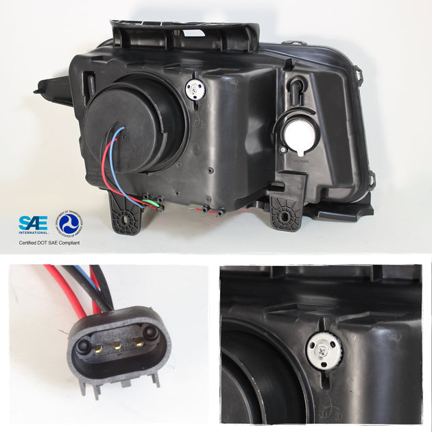 AKKON - Fits 2010-2013 Chevy Camaro [Halogen Upgrade] Projector Black Headlights Pair Left+Right w/ LED DRL Tube Running