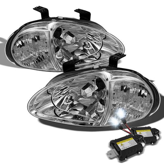 Regular price $145.99This is a 100% brand new pair of Headlights Replacement Assemblies with HID Conversion Kit in Polished Chrome Housing With Crystal Clear Lens Compatible With: 93-97 Honda Del Sol All Model Manufacturer Part Number: 33150SR2A02, 33100SR2A02,33150SR2A01,... -