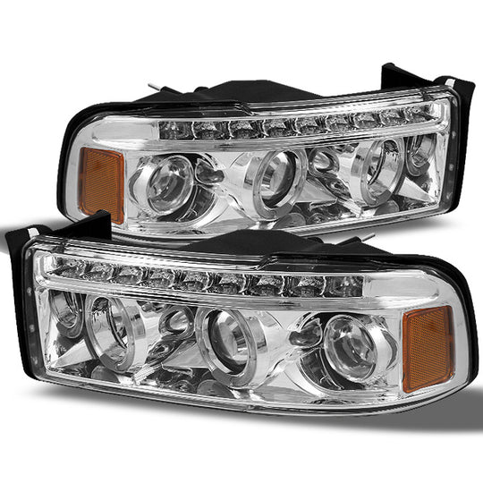 Fits 94-01 Ram Pickup Dual Halo Projector Headlights W/DRL Daylight LED Strip
