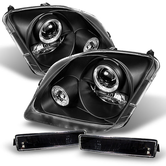 Fits 97-01 Prulude Black Halo Projector Headlights+Black Bumper Signal Lights