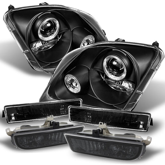 Fits 97-01 Prulude Black Halo Projector Headlights+Smoke Fog Lamp+ Bumper Signal