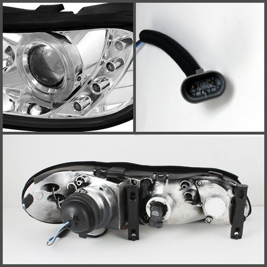 Fits 97-03 Chevy Malibu Chrome Clear Dual Halo Projector LED Headlights Lamp Set